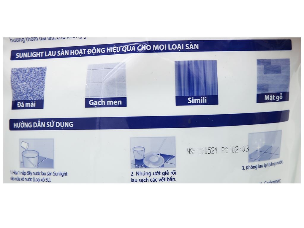 Để sử dụng nước lau sàn, bạn cần hoà 1 nắp đầy Sunlight lau sàn vào nửa xô nước (loại xô 5L). Sau đó, nhúng ướt giẻ rồi lau sạch các vết bẩn. Không lau lại bằng nước.