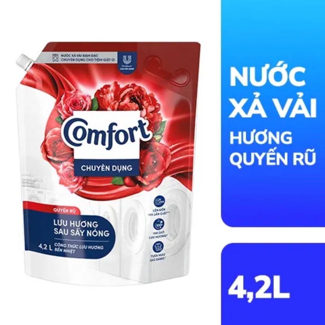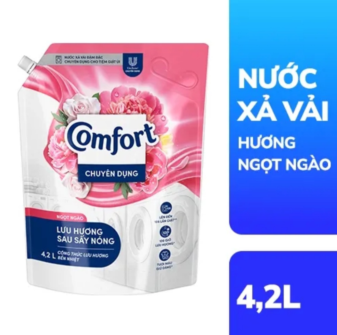 🔵🌹🌹 Nước xả vải COMFORT là sản phẩm chuyên dụng giúp làm mềm vải, loại bỏ mùi hôi và tạo hương thơm dễ chịu cho quần áo. Với công thức đặc biệt, sản phẩm giúp làm sạch và khử mùi hiệu quả, đồng thời bảo vệ màu sắc và chất liệu vải. Nước xả vải làm mềm vải COMFORT đậm đặc chuyên dụng hiện Phúc Châu Shop có 2 mùi hương quyến rũ và hương ngọt ngào. Túi lớn 4,2l giúp tiết kiệm chi phí và dễ dàng sử dụng trong thời gian dài.